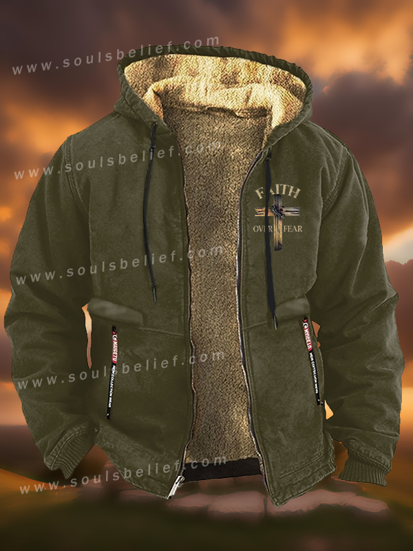 Cross Faith Over Fear Christian Zipper Hooded Jacket