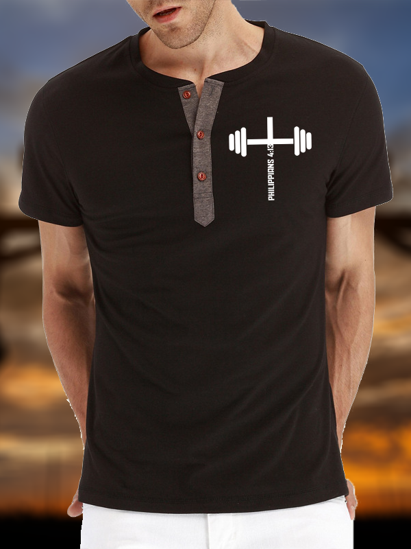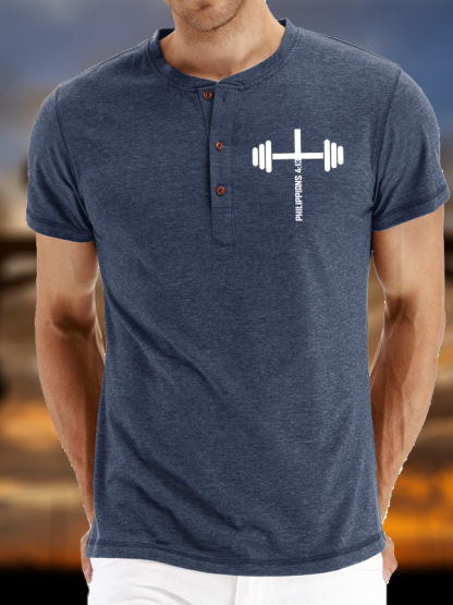Fitness Philippians 4:13 Christian Henley T Shirt
