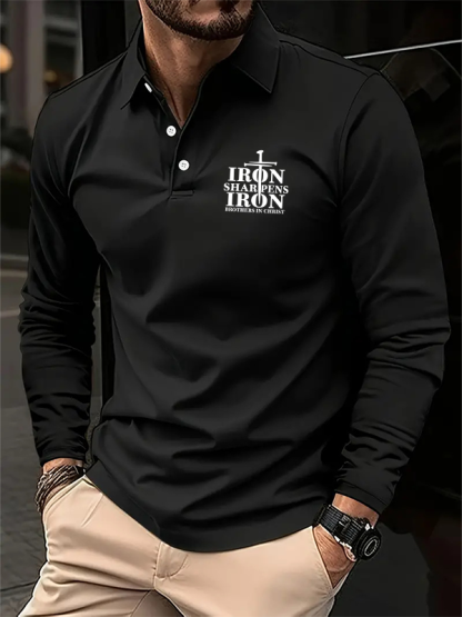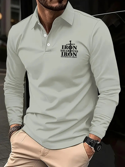Iron Sharpens Christian Cross Jesus Long Sleeve Polo Shirt
