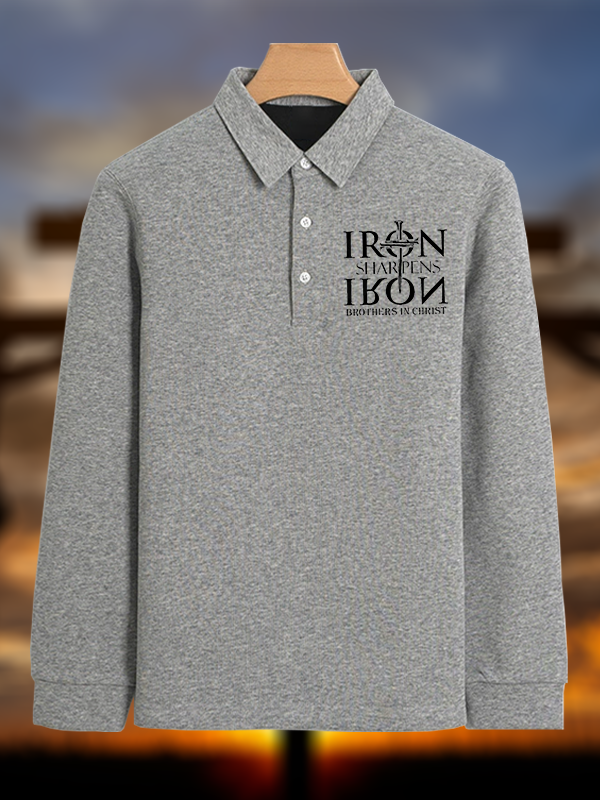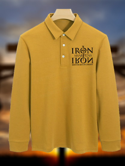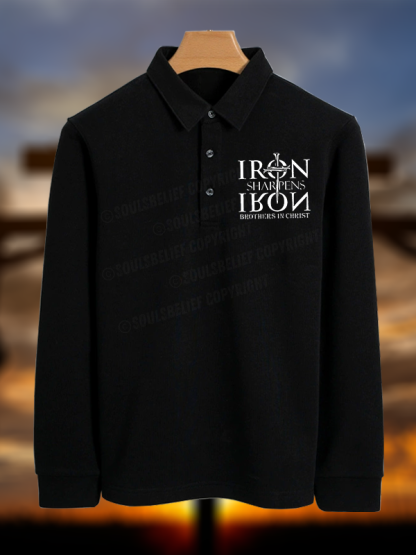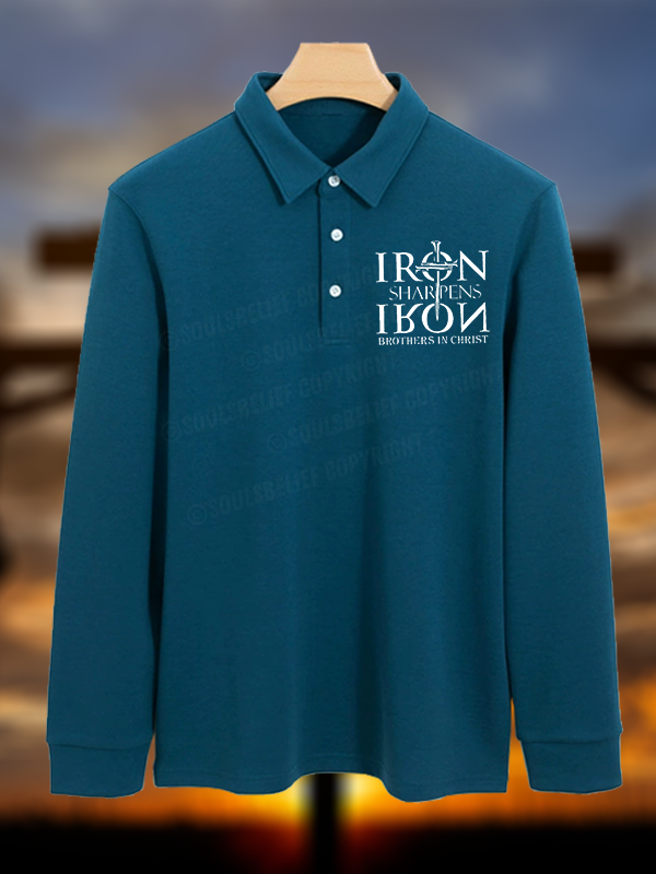 Iron Sharpens Iron Brothers in Christ Christian Cotton Long-sleeve Polo Shirt