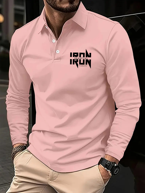 IRON SHARPENS IRON Proverbs 27:17 Christian Cross Jesus Long Sleeve Polo Shirt