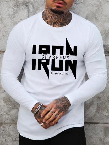 IRON SHARPENS IRON Proverbs 27:17 Christian Men's Long Sleeve
