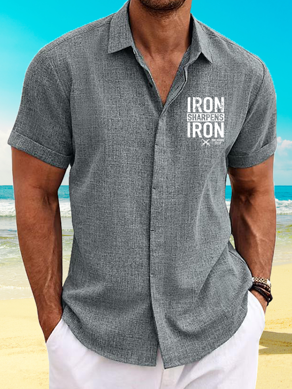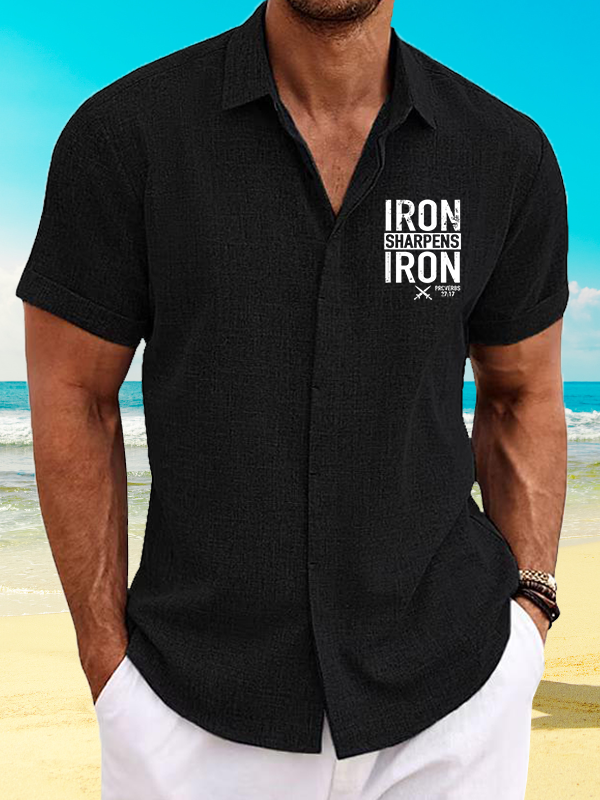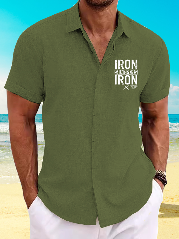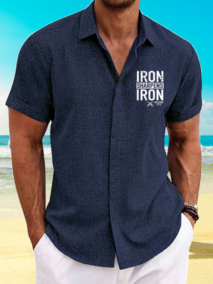 Iron Sharpens Iron Proverbs 27:17 Christian Men's Short Sleeve Shirt