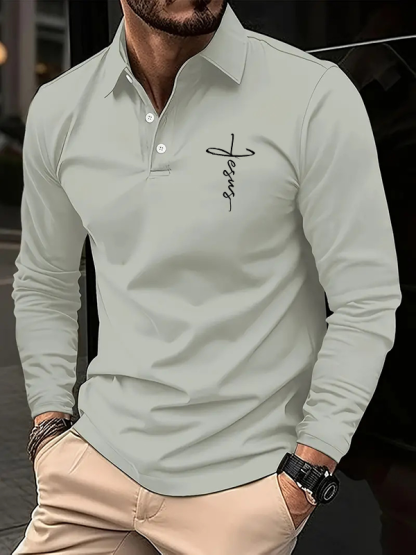 Jesus Christian Cross Jesus Long Sleeve Polo Shirt