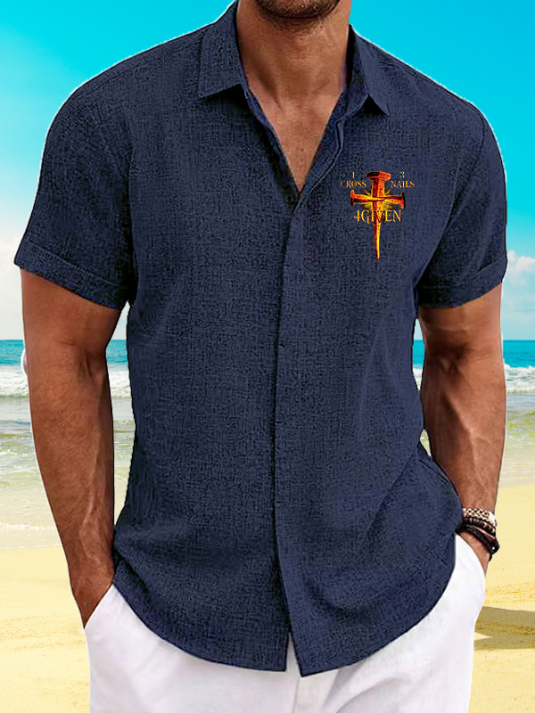 Jesus Four Nails Story Men's Casual Short Sleeve Shirt