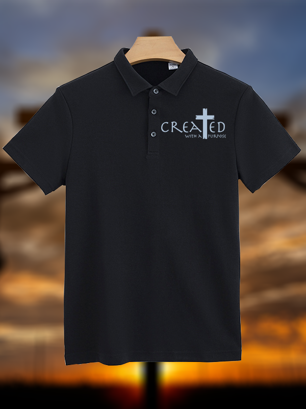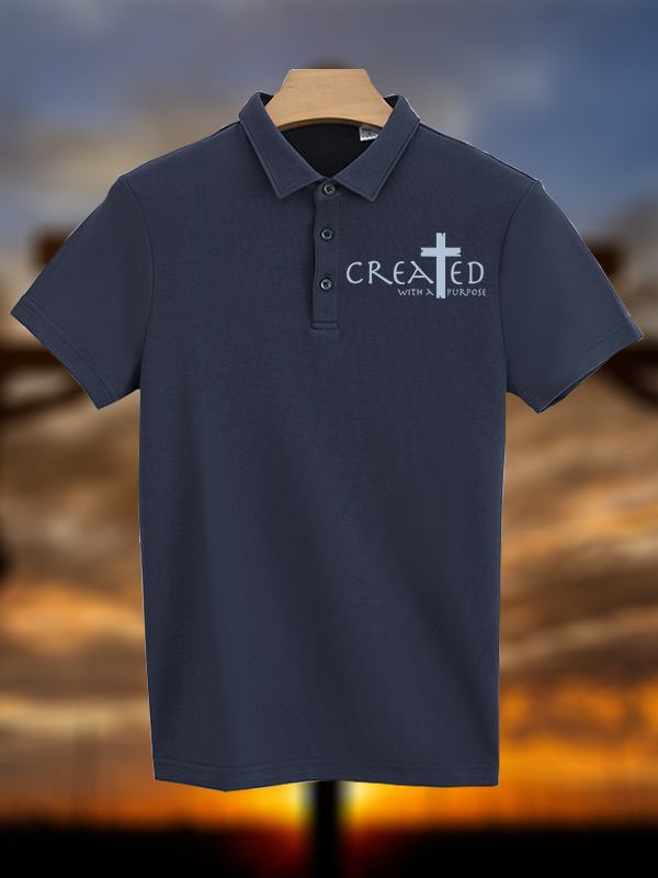 Created with a Purpose Christian Cotton Short Sleeve Polo Shirt