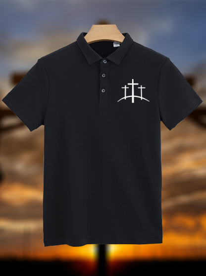 Cross Printed Christian Cotton Short Sleeve Polo Shirt