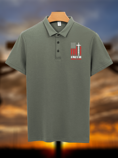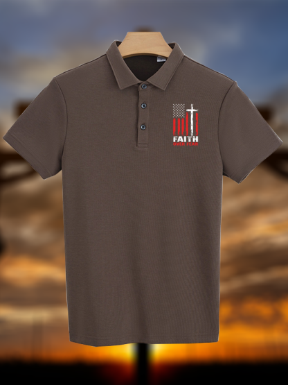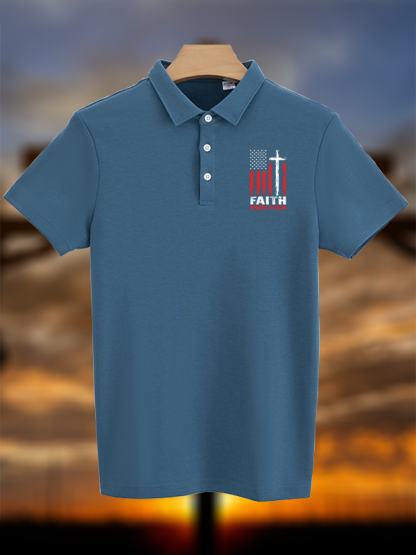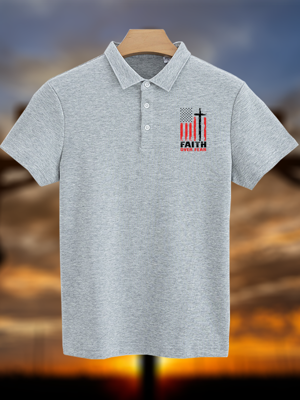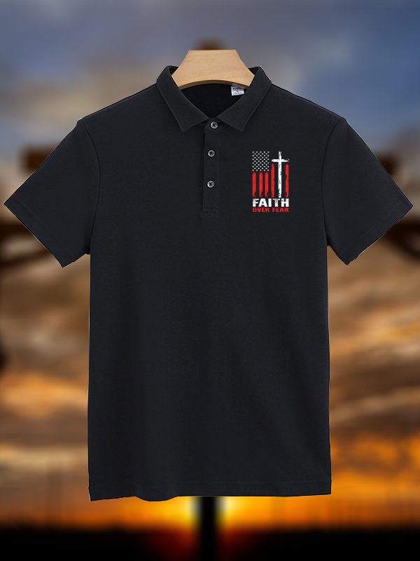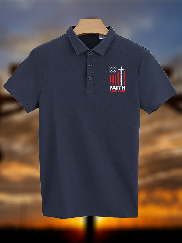 Faith Over Fear Flag Christian Cotton Short Sleeve Polo Shirt