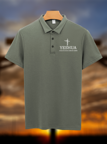 Yeshua King Of Kings Lord Of Lords Christian Cotton Short Sleeve Polo Shirt