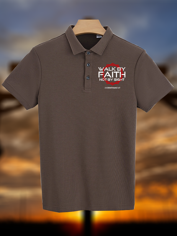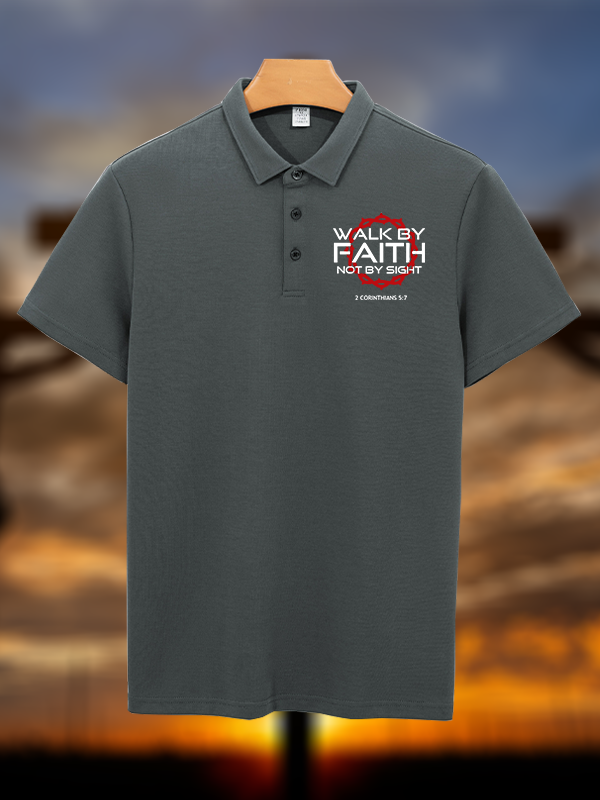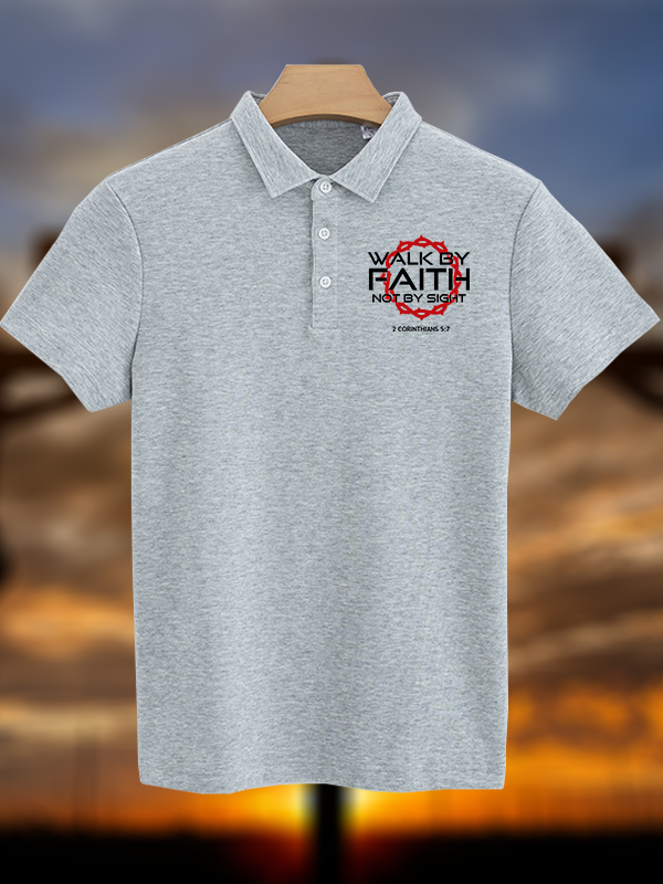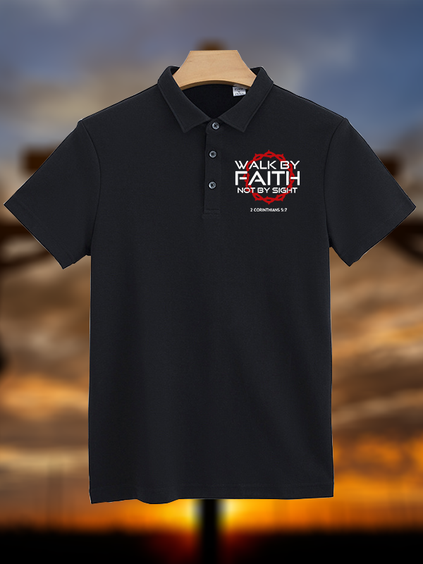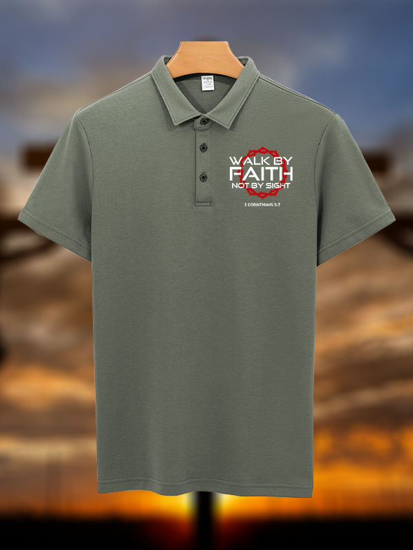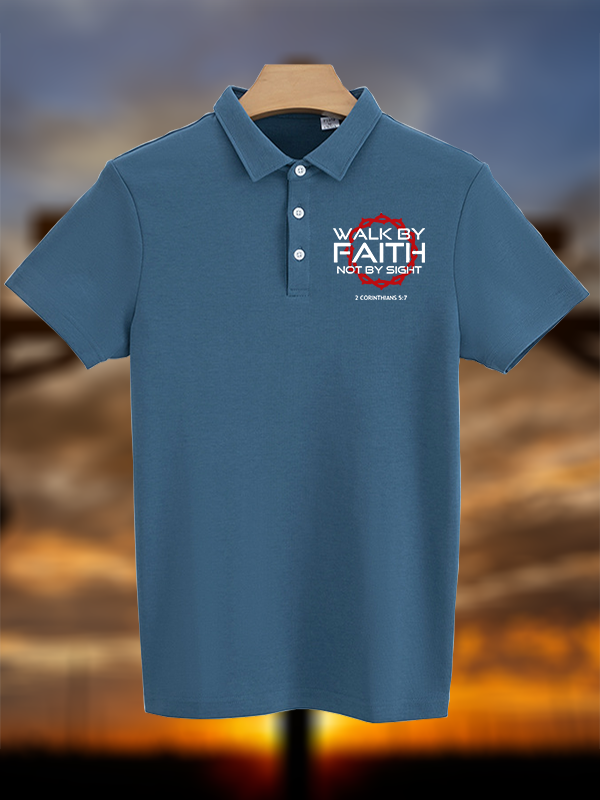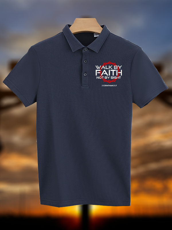 Walk By Faith Not By Sight 2 Corinthians 5:7 Christian Cotton Short Sleeve Polo Shirt