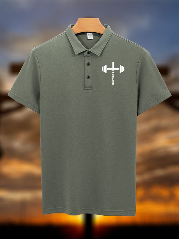 Fitness Philippians 4:13 Christian Cotton Short Sleeve Polo Shirt