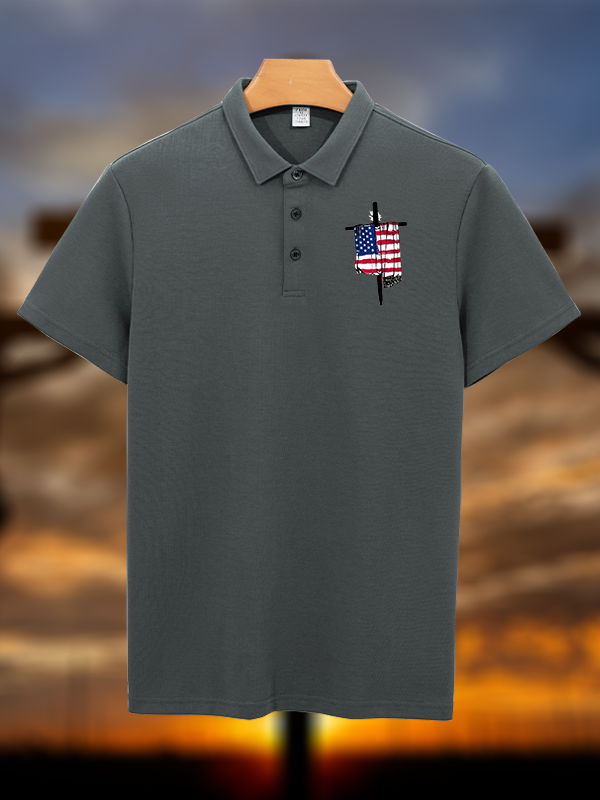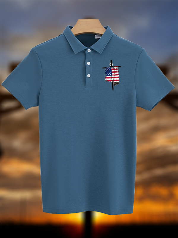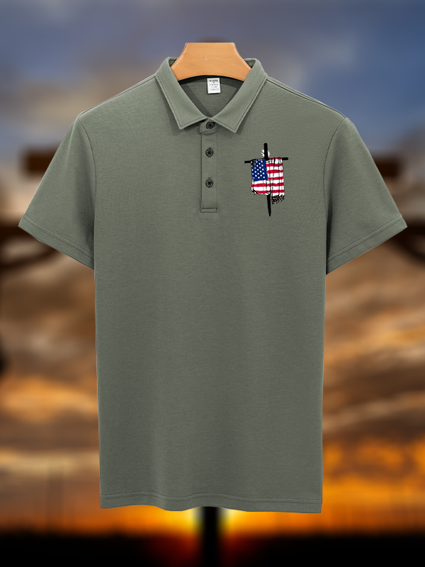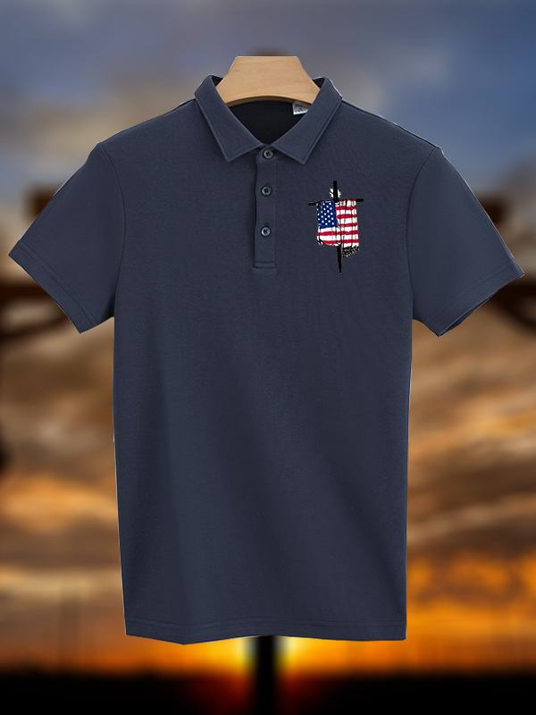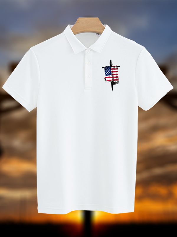 Faith Print Christian Cotton Short Sleeve Polo Shirt