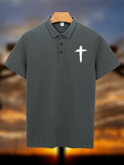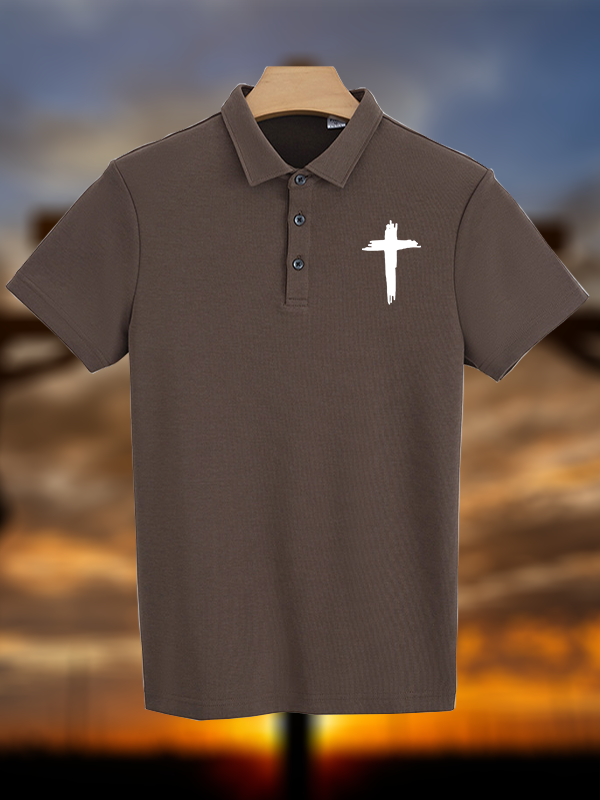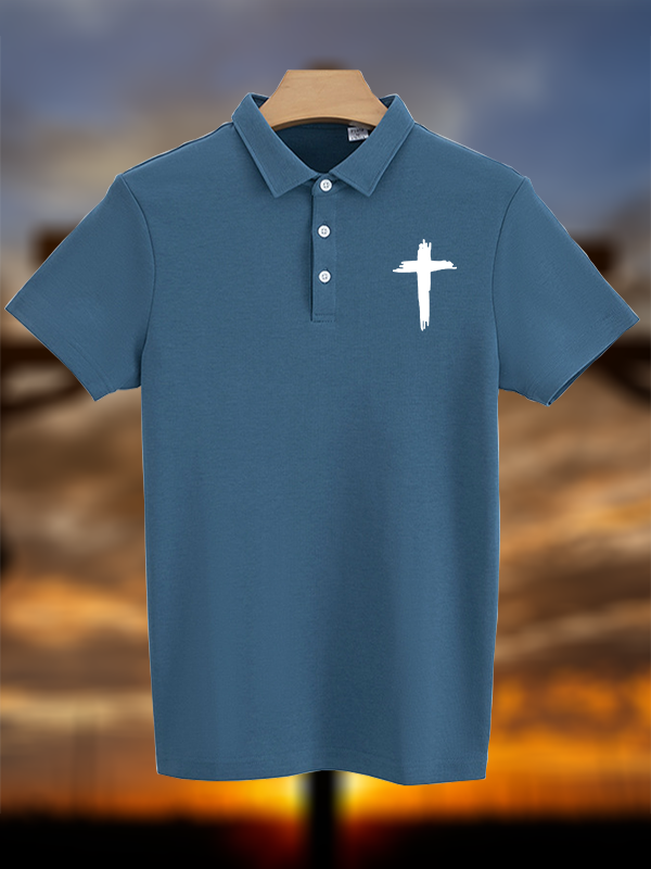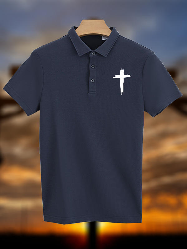 Cross Printed Christian Cotton Short Sleeve Polo Shirt