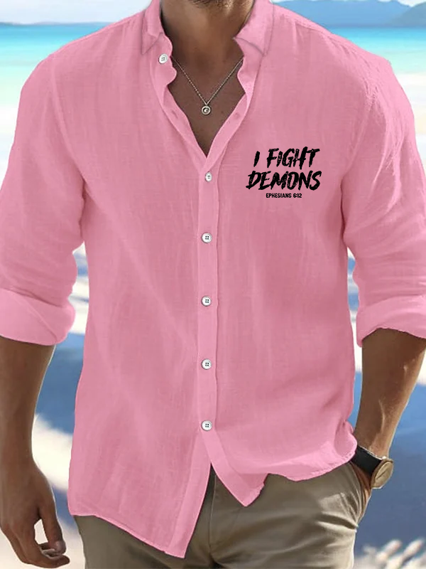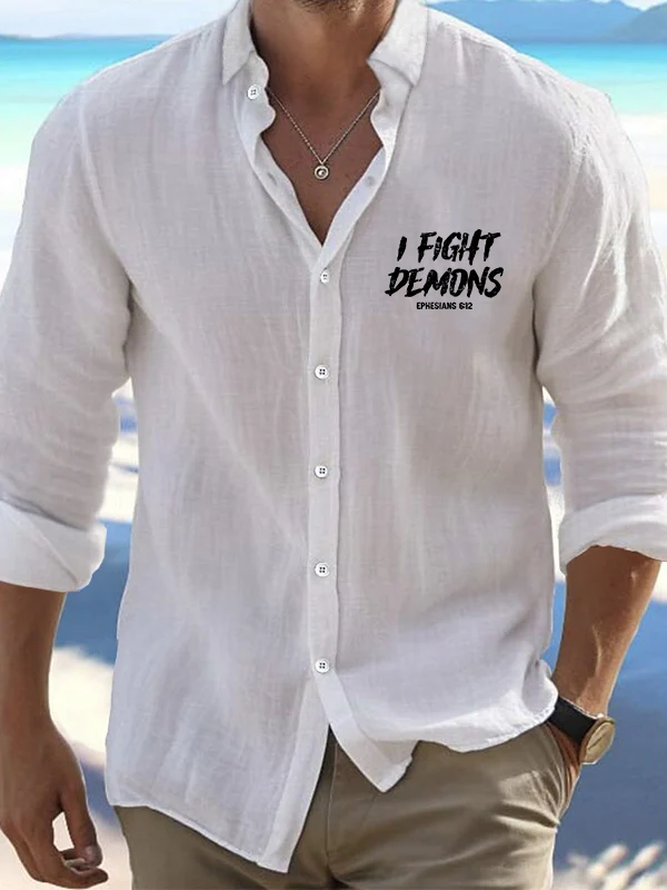 I Fight Demons Ephesians 6:12 Simple Resort Casual Shirt