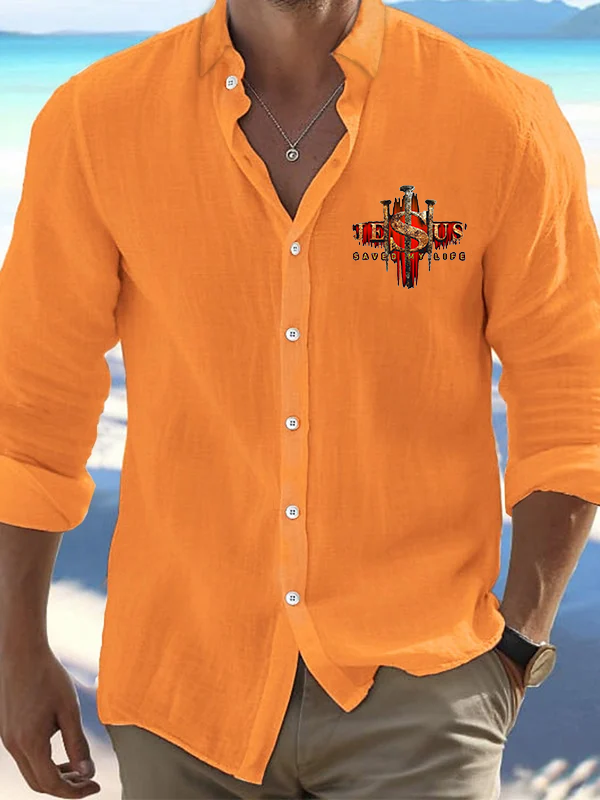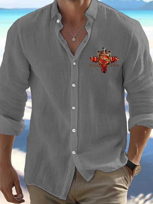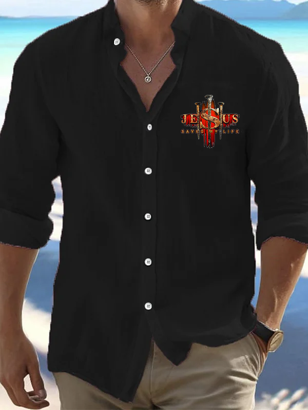 Jesus Saved My Life Printed Simple Resort Casual Shirt