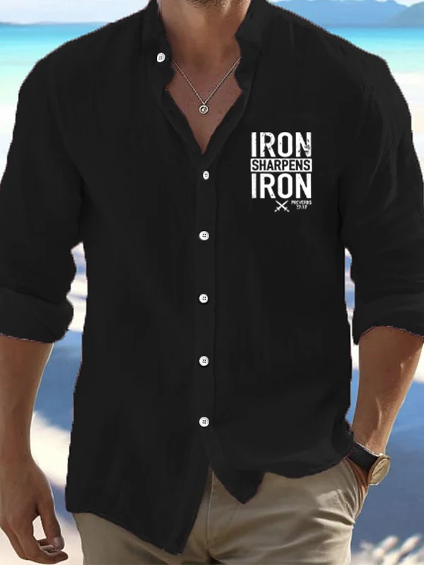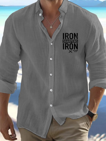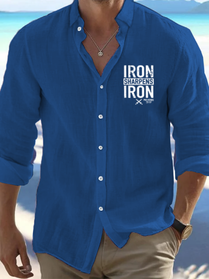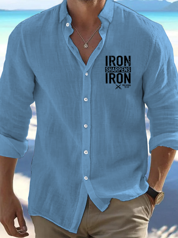 Iron Sharpens Iron Proverbs 27:17 Christian Men's Casual Shirt