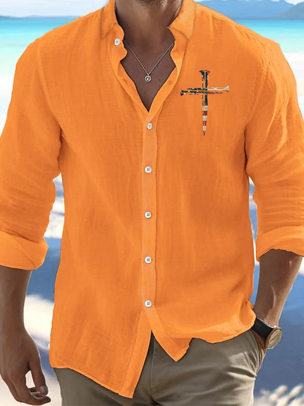 Men's Flag Cross Print Simple Resort Casual Shirt