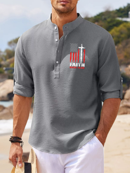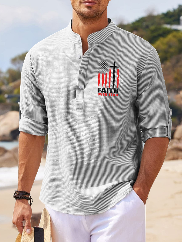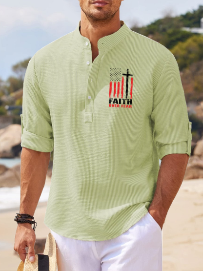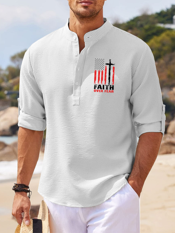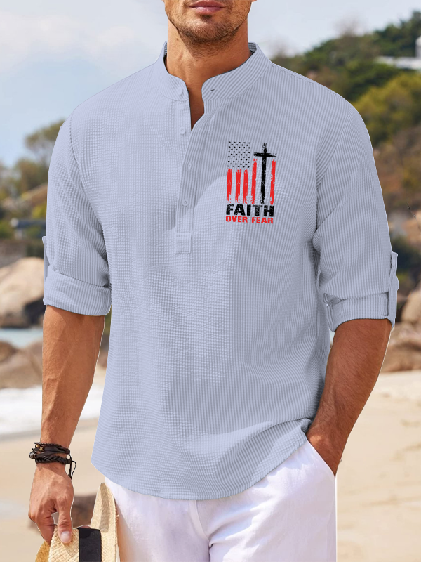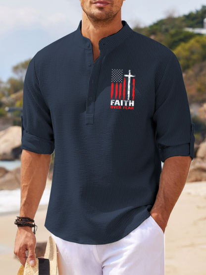 Faith Over Fear Flag Christian Simple Resort Casual Shirt