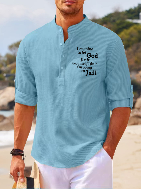 I’m Going to Let God Fix It Because if I Fix It I’m Going to Jail Christian Simple Resort Casual Shirt