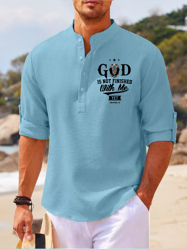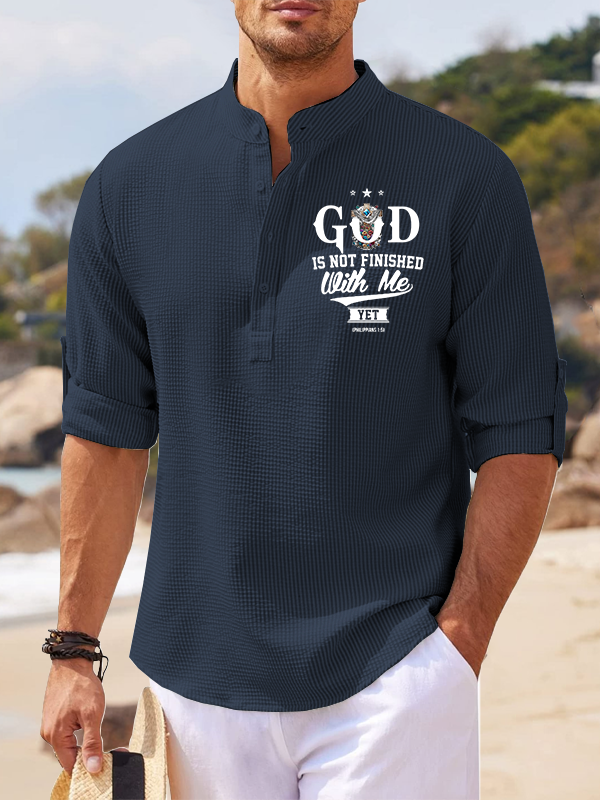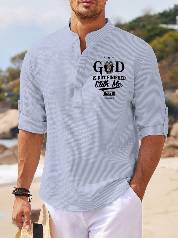 God Is Not Finished With Me Philippians 1:5 Christian Simple Resort Casual Shirt