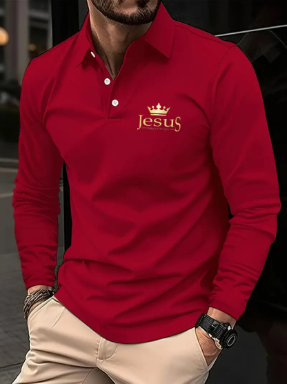 Jesus The King Of Kings Christian Cross Jesus Long Sleeve Polo Shirt