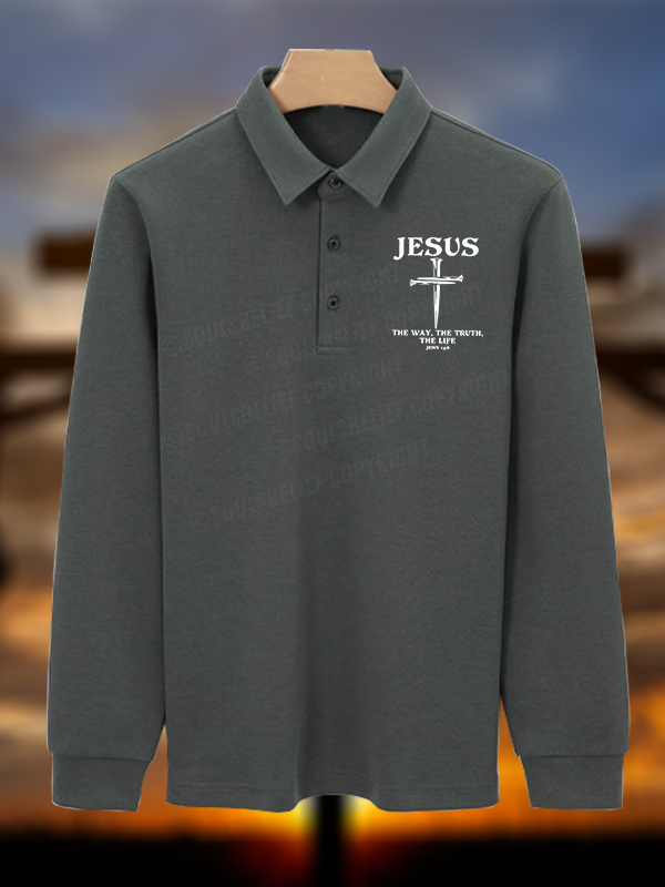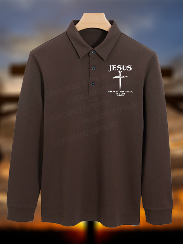 Jesus The Way The Truth The Life Christian Cotton Long-sleeve Polo Shirt