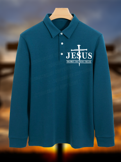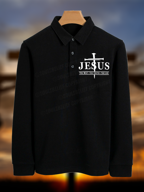Jesus The Way The Truth The Life Christian Cotton Long-sleeve Polo Shirt