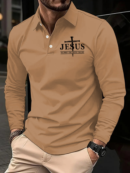 Jesus The Way The Truth The Life Christian Cross Jesus Long Sleeve Polo Shirt