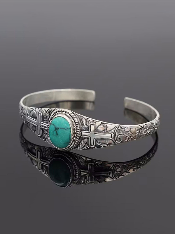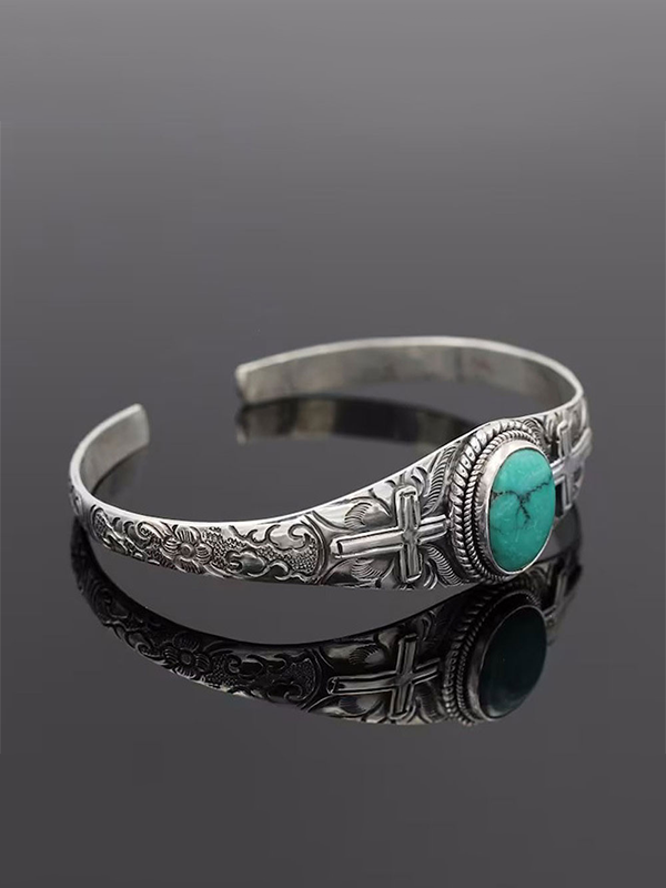 Light Weight Silver Cross and Turquoise Stone Bracelet