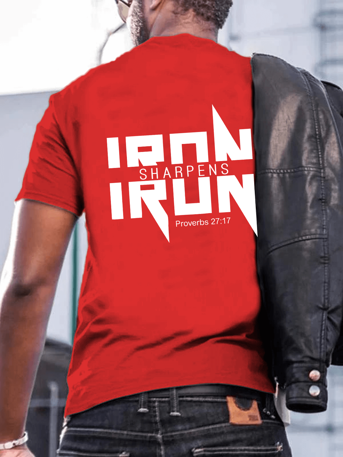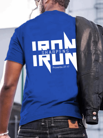 IRON SHARPENS IRON Proverbs 27:17 Christian Men's T-shirt