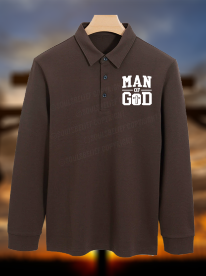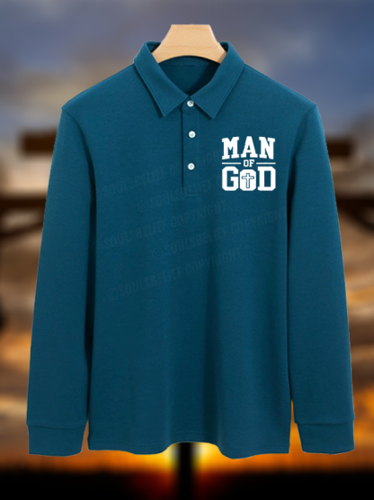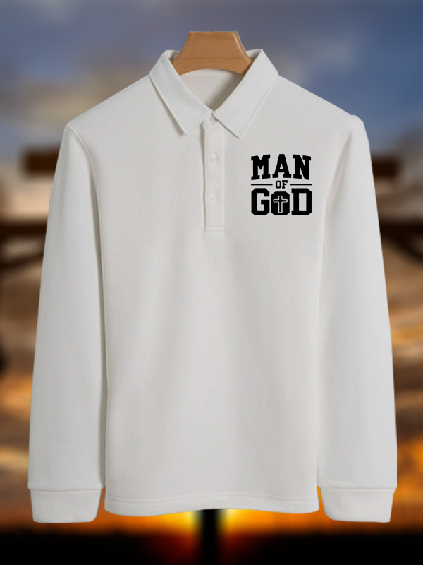 Man Of God Christian Cotton Long-sleeve Polo Shirt