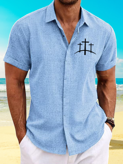 Men's Cross Printed Simple Resort Short Sleeve Shirt