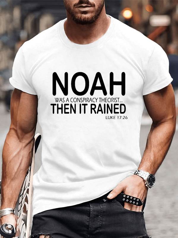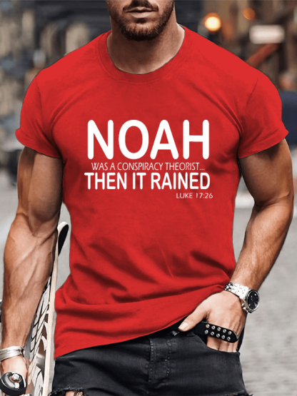 Noah Was a Conspiracy Theorist Then It Rained Luke 17:26 Bible Men's T-shirts