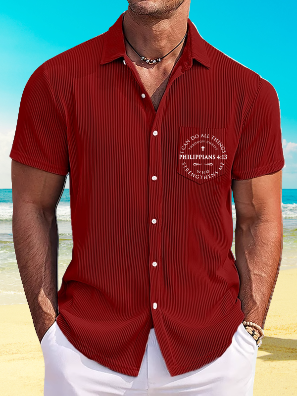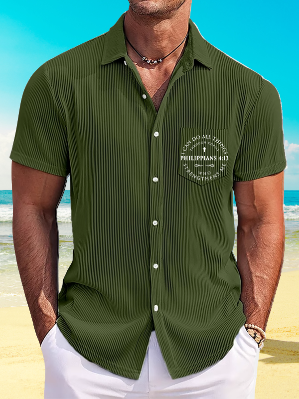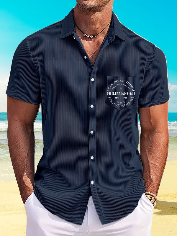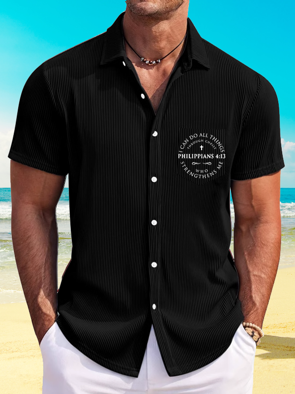 Philippians 4:13 Christian Striped Short-Sleeved Shirt