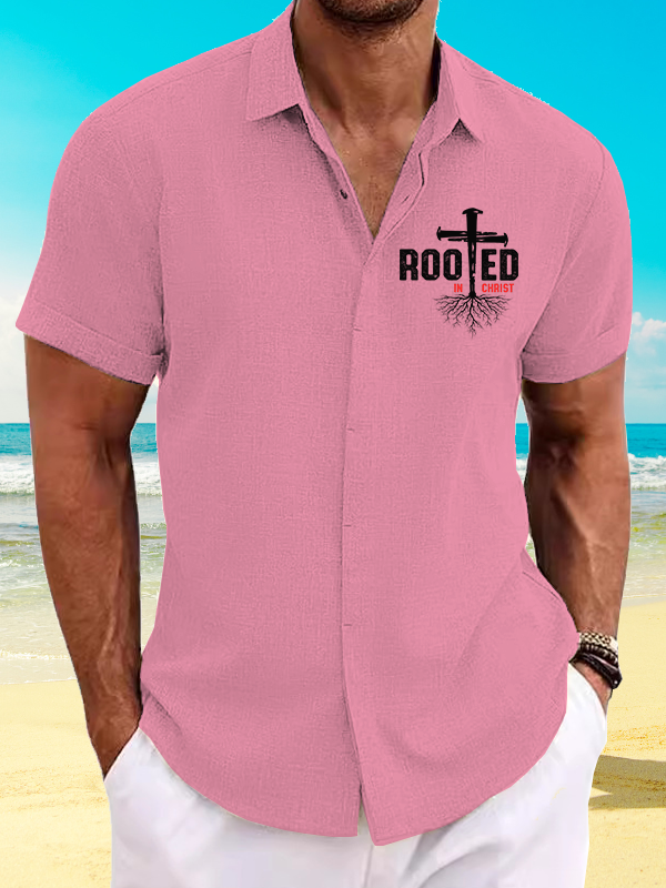 Rooted In Christ Cross Short Sleeve Shirt