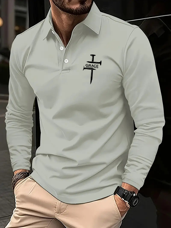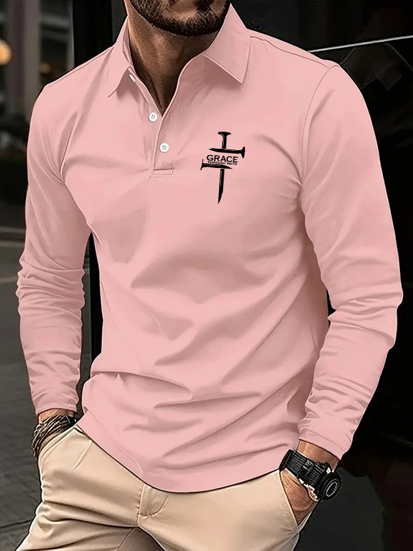 Saved By Grace Christian Cross Jesus Long Sleeve Polo Shirt