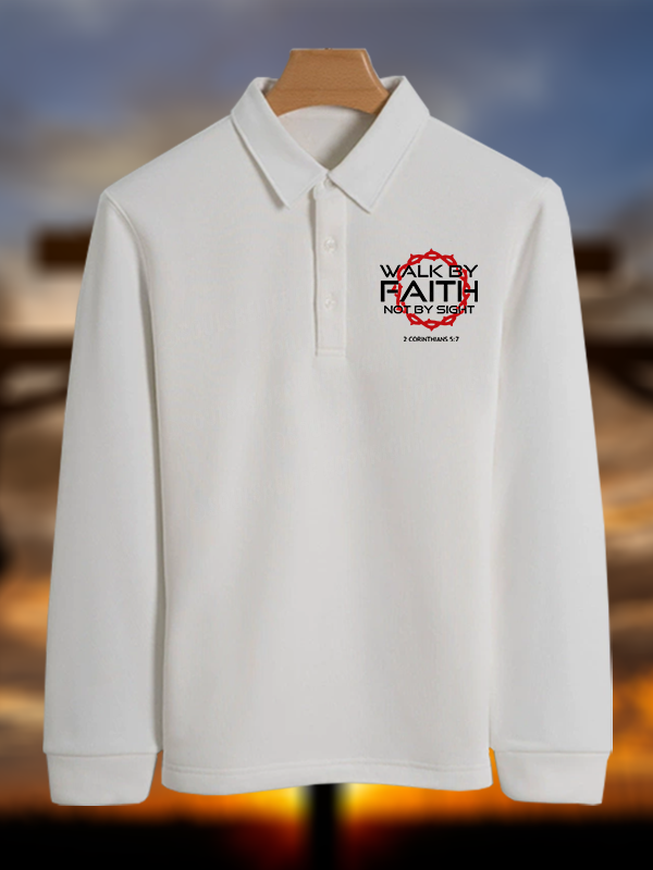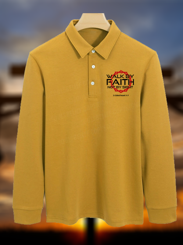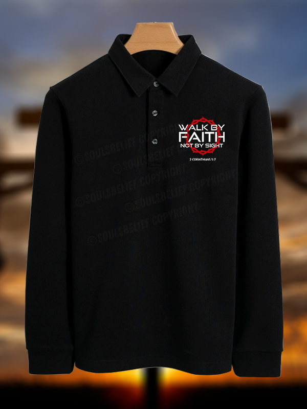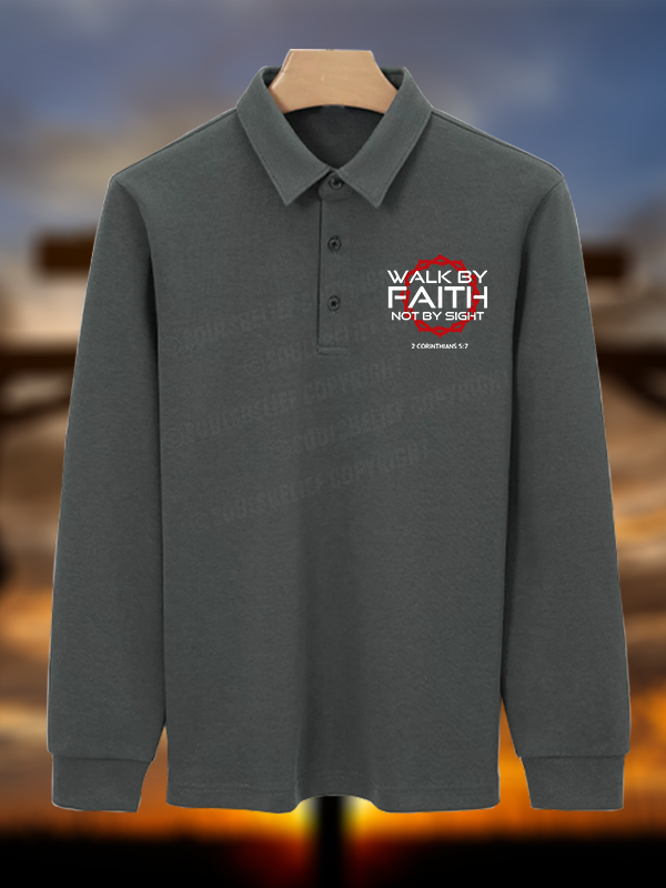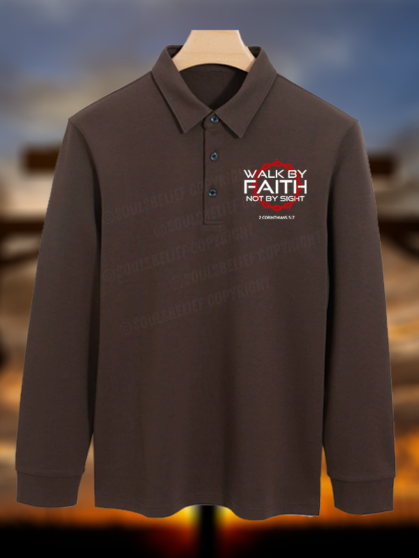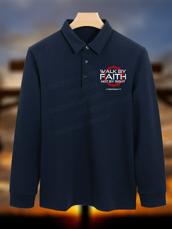 Walk By Faith Not By Sight 2 Corinthians 5:7 Christian Cotton Long-sleeve Polo Shirt
