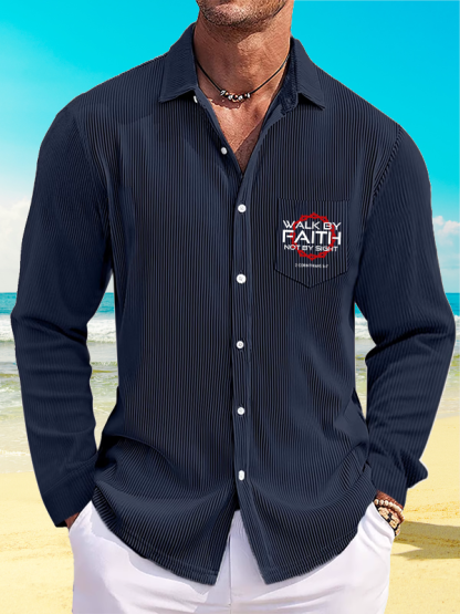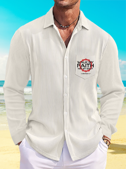 Walk By Faith Not By Sight 2 Corinthians 5:7 Printed Christian Striped Long-Sleeved Shirt