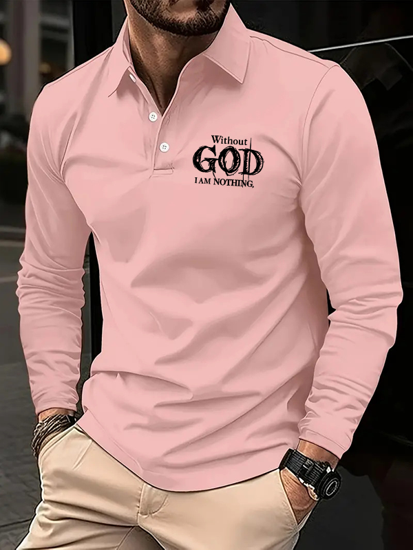 Without God I Am Nothing Christian Cross Jesus Long Sleeve Polo Shirt